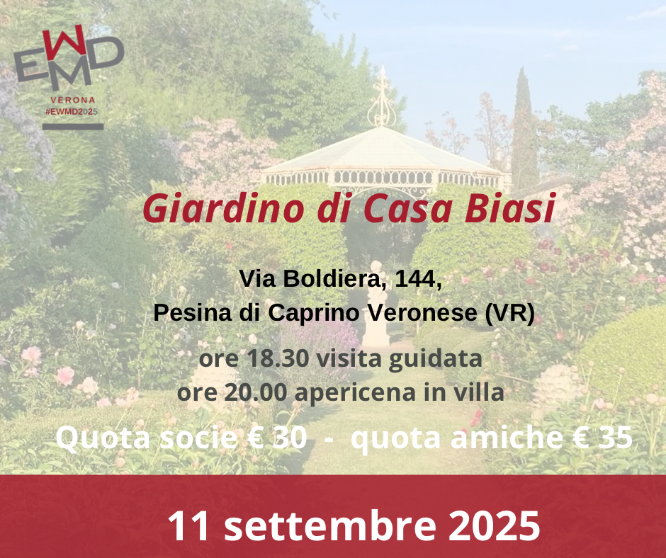 Avremo l’opportunità di visitare questo suggestivo luogo, accolte dai padroni di casa che ci accompagneranno alla scoperta del loro splendido giardino.