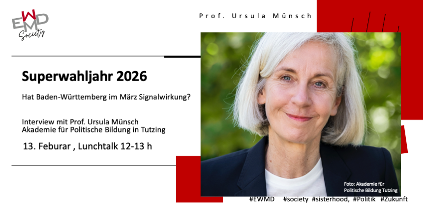 EWMD Society | Online Lunch mit Prof. Dr. Ursula Münch zur Landtagswahl im Baden-Württemberg und dem Superwahljahr 2026