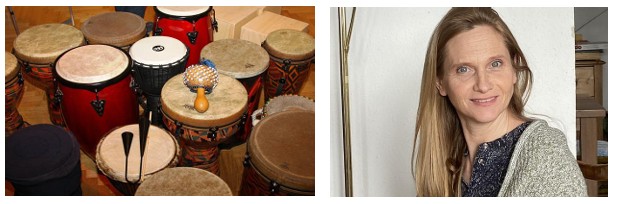 17:30–19:00 Uhr: Trommeln und Eintauchen in die Welt des Rhythmus unter der Leitung von Renate